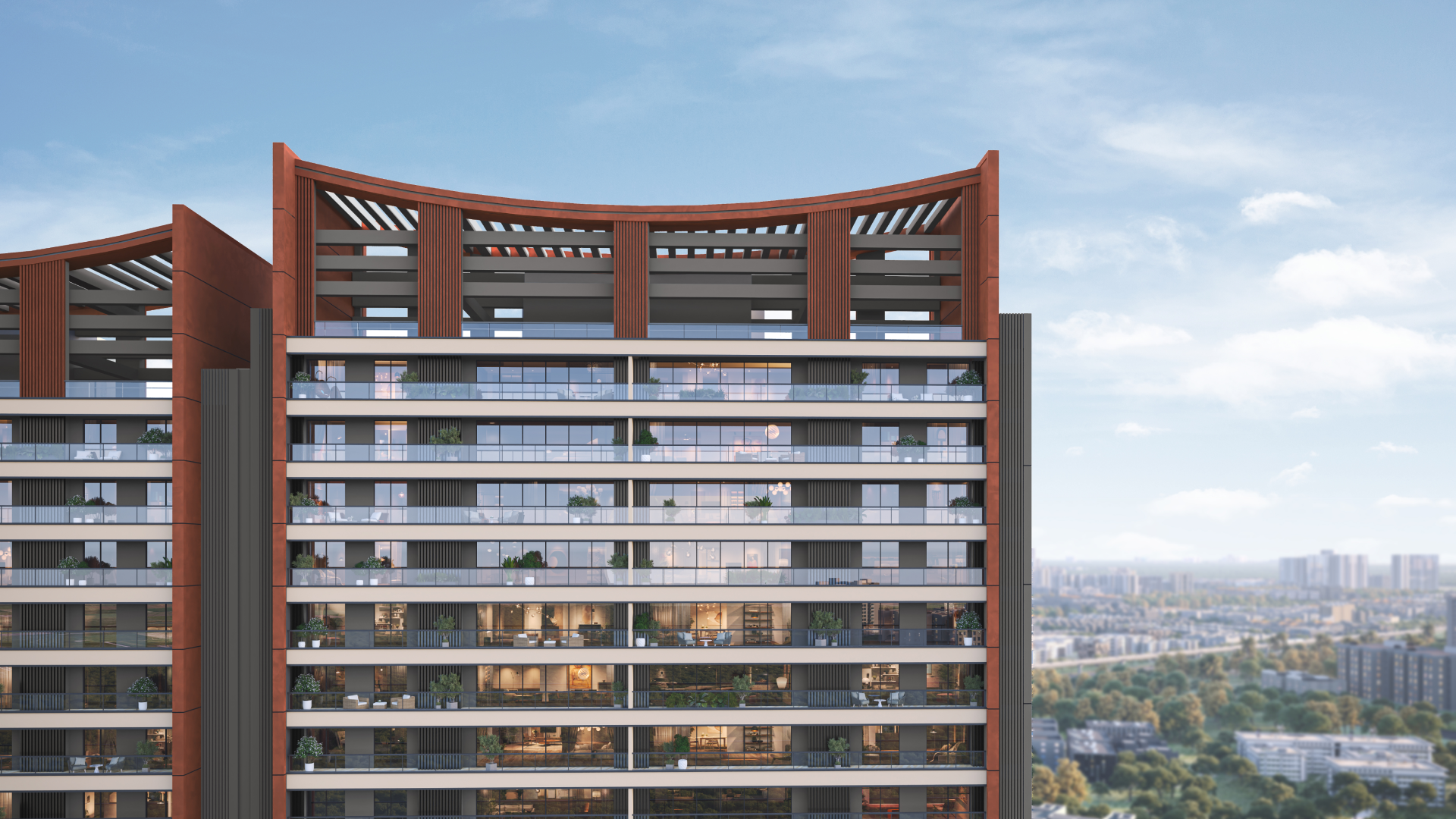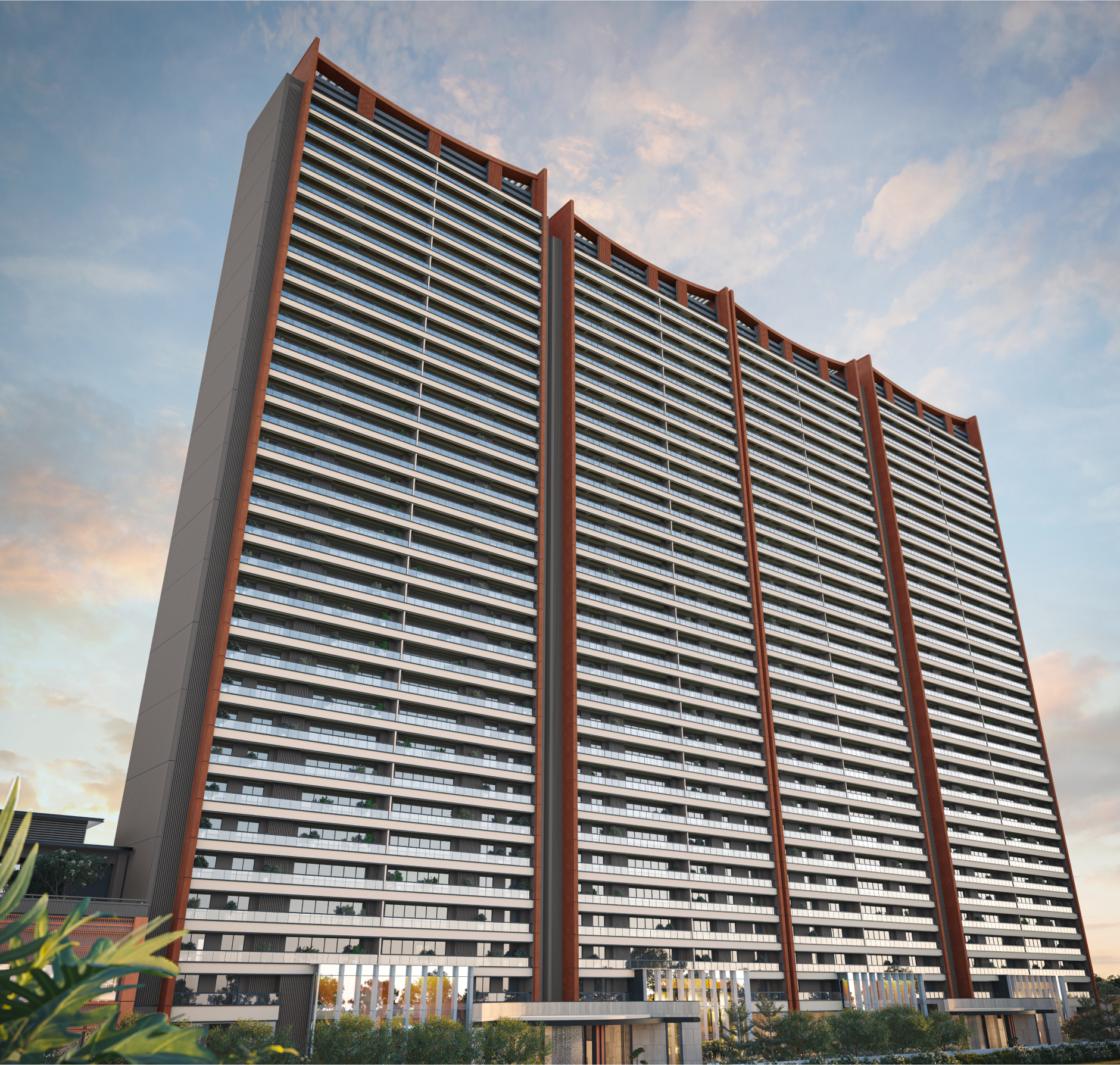From the torii gate inspired facade to the japanese flora themed landscaping, serenity can be found everywhere one looks. While ~50 ft. Balconies, expansive interiors, private lift lobbies and towers placed thoughtfully for both sunrise and sunset views bring elegance and mindfulness home.